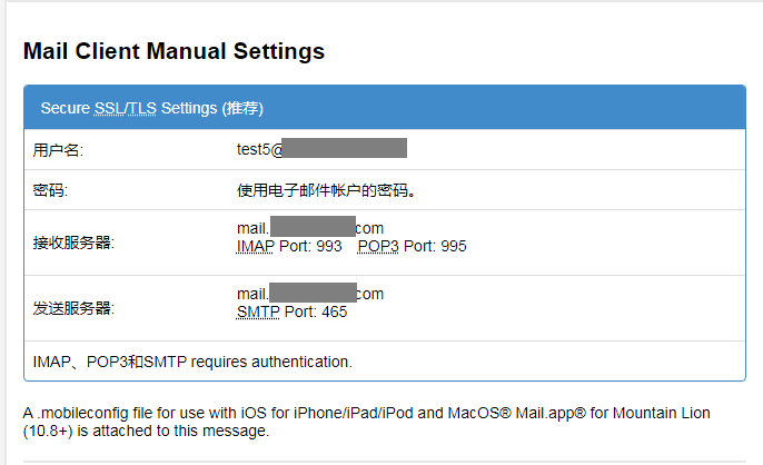 这是我作为示范,申请的一个电子邮箱,它通常会发送一封设置邮件到您开通的邮箱里,只要照着它的提示填写就可以了,例如上面的图片,非常清楚的给出了接收服务器; mail.xxxxxx.com ,下面给出了POP3 Port端口号 995 , 说明接收服务器支持POP3-SSL. 而发送服务器,就是SMTP-SSL,端口号是465, 可以说,Email-dns里所需要的邮箱方面的参数,它给出的非常清晰了.