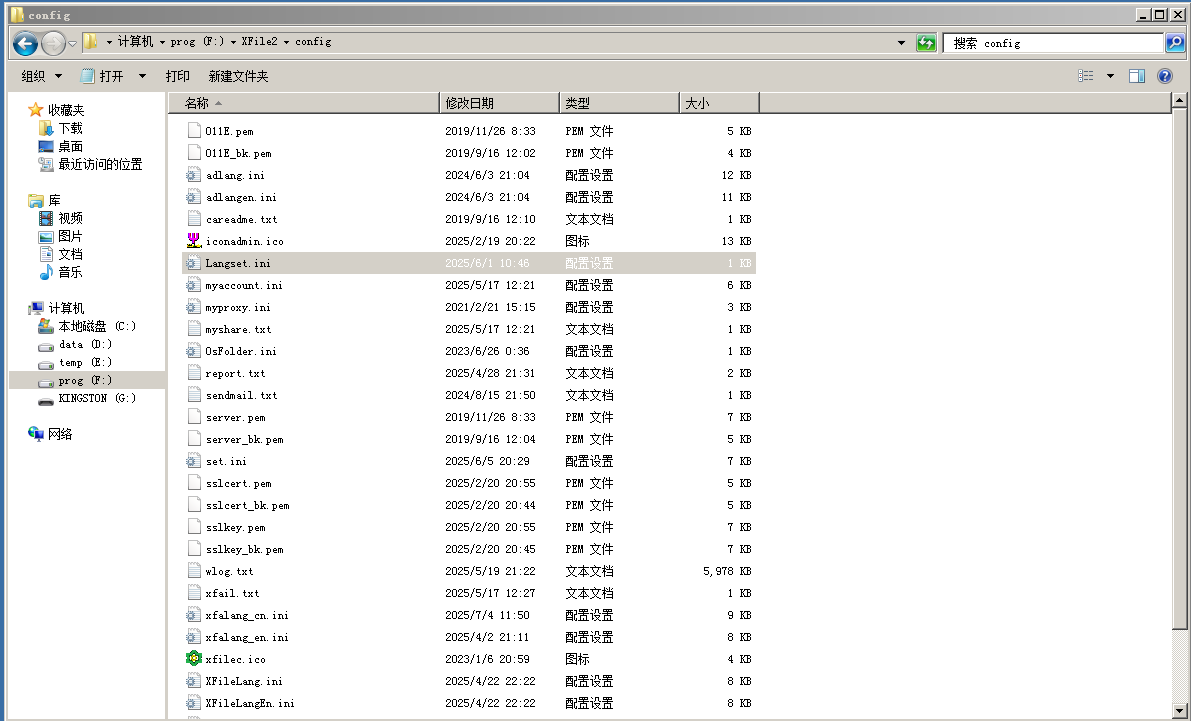 对于桌面端的应用,包括XFileC和XFileAdmin程序,可以通过编辑安装目录下的config子目录下的Langset.ini (Linux下默认位置是 /usr/tmp1/Xfile/config子目录下)