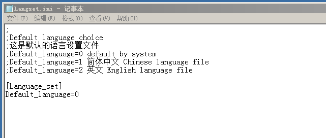 这里Default_language=0 是默认,根据系统语言自动选择,但是可能匹配错误导致选用了错误的语言,您可以通过在这里修改设置,来强制指定语言.