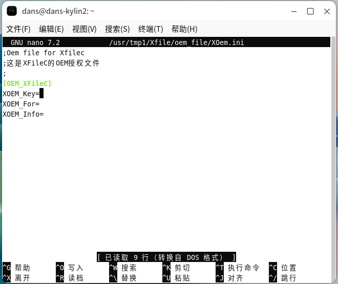 [3]Linux环境下的OEM授权,和Windows下的授权是通用的,只需要在config子目录的XOem.ini文件里,输入注册码,然后重新启动程序就会知道读取并完成授权,简单的说,以管理员权限打开XOem.ini,找到