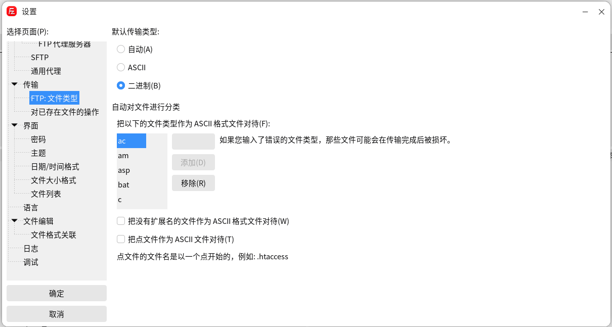 传输类型默认是自动,这是历史遗留,强烈建议改成二进制.