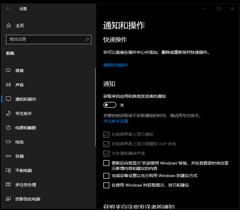 [5] 在windows 10设置里面,关闭所有类似通知的操作,每个项目该关闭就关闭,有一大堆,各种后台根本没有统一设置,花点时间仔细找吧,很头大的各种设置.