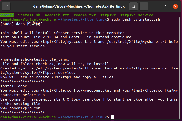 [3]在当前目录下,打开命令行终端,输入 sudo bash ./install.sh