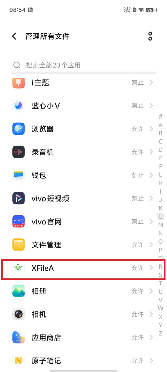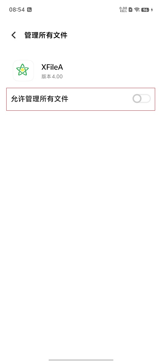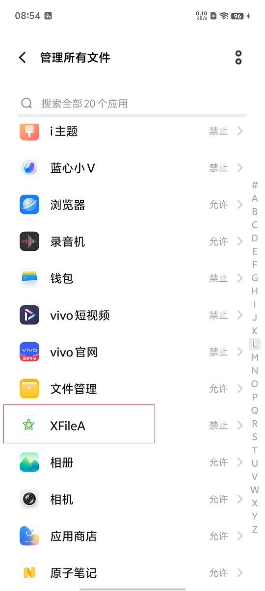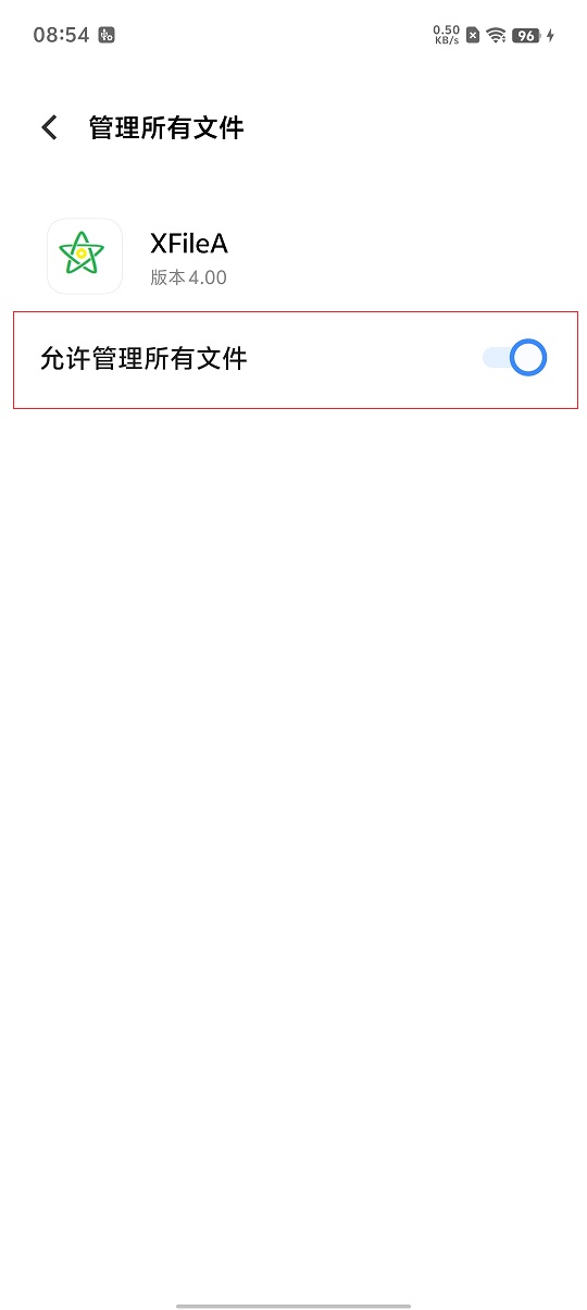 Android规定,这个必须由用户您手动授权,因此您先要找到XFileA名称,然后点亮它也就是给于管理文件的权限