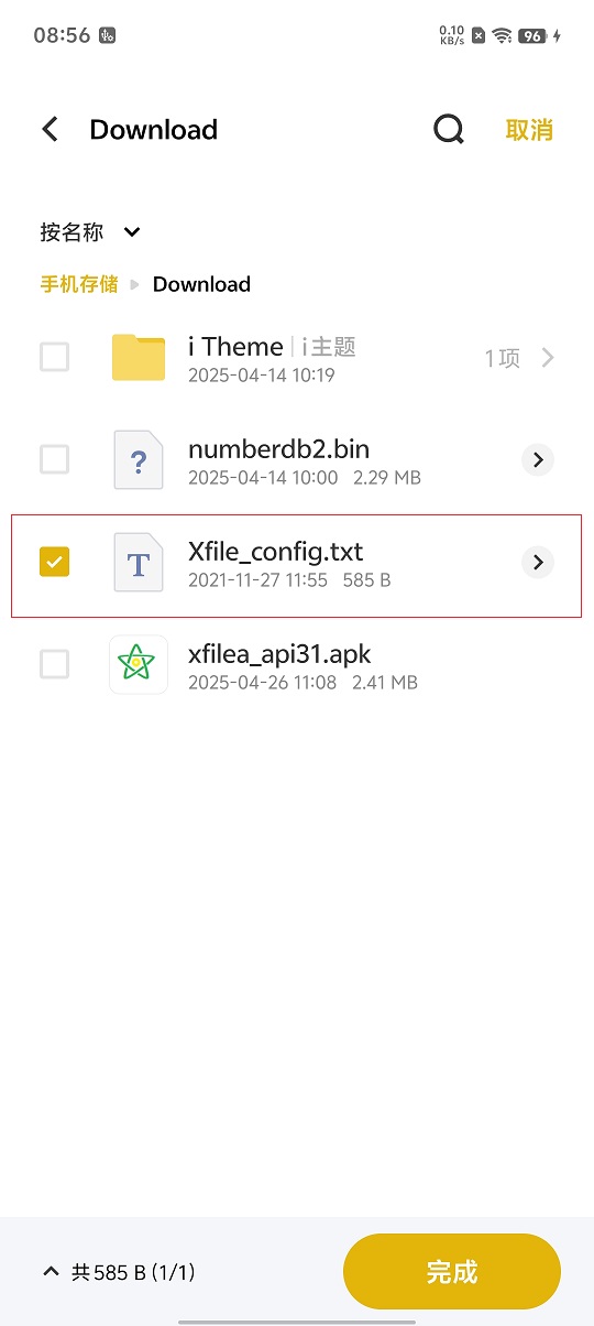 找到XFile_config.txt文件并选择它 ,然后点 完成, XFileA会自动导入配置文件并进行保存,然后返回登录主界面