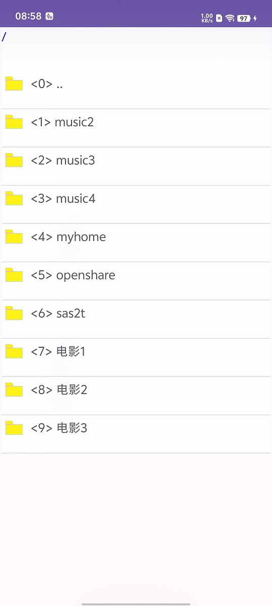 列表搜索: 等同于右滑操作,将在当前的列表内搜索您输入的关键词所在项目,这在列表内存在大量文件和目录的时候要快速查找目标文件或者目录非常有效.