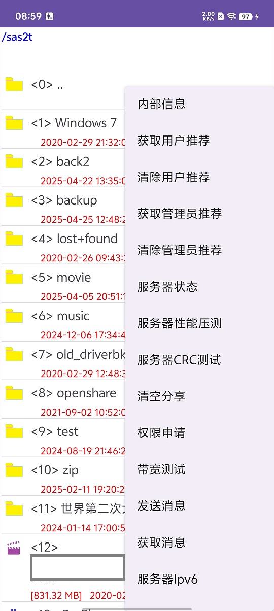 打开方式:会自动为文件生成连接,但是由您选择使用哪个app打开,这个功能在4.08(2025.09.01)版本开始进行了调整强化,配合Mime格式,现在可以支持多种文件选择本地已经安装的App而不是浏览器,但是这取决于您的Android系统是如何设置的,在我们的测试中,遵守Android系统定义的,接近原生Android的系统下,可选的应用可以正常被列出,但是在某些被大改的手机系统里,可能依然只有唯一的浏览器可选,总之,不同手机上表现完全不同. 另外,从4.08版本(2025.09.01版本开始,打开方式下,会自动将文件的url连接拷贝到剪贴板中,如果打开方式不正确,您可以尝试手动打开您认为正确的应用,然后使用应用的打开或者类似的功能,将剪贴板里的url复制过去尝试,如果应用确实支持http方式的读取,那么一般就能成功,这是一种额外的打开操作方式.