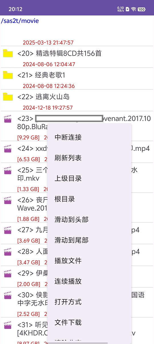 播放文件:如果文件是媒体文件,这个菜单可用,等同于您点击该文件然后自动播放.