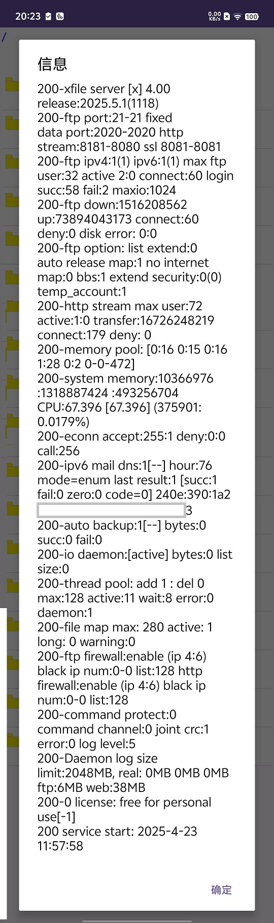 这个服务器状态截图的初步讲解: 第1行 说明的是服务器运行的是XFile 4.00版本的服务器 软件的发布日期为2025年5月第一次发布,内部代码号为1118