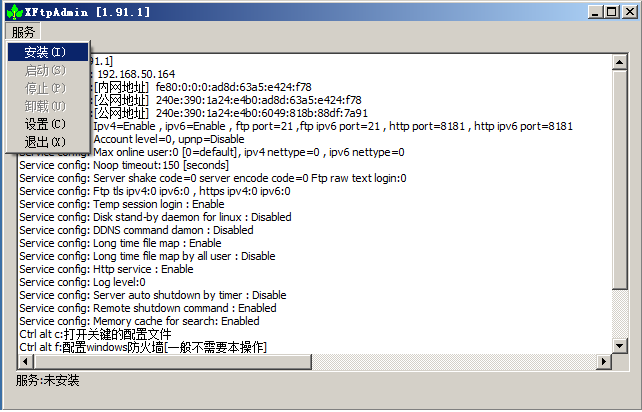 未安装, XFtpAdmin只是个前台管理工具,XFile是个后台服务,因此需要有一个安装过程,